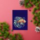 Esta imagen representa una interpretación vibrante y artística de un pez, estilizado en una estética de acuarela con aletas y escalas fluidas y complejas. El pescado presenta una mezcla de rojos cálidos, dorados y naranjas, en contraste con los azules y los verdes. Sus elegantes aletas giran hacia el exterior, pareciéndose a las olas o a las corrientes, dándole un aspecto dinámico, casi etéreo. Los patrones intrincados y los colores vibrantes evocan una sensación de energía y fluidez que recuerda a la naturaleza y al agua.