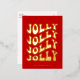 Postcard Navidades de Jolly Jolly Jolly: un diseño retro, con una tipografía de época ondulada en Relieve metalizado dorado y un fondo rojo clásico.