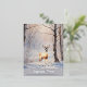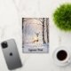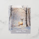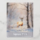 Esta encantadora postal vacacional capta la tranquilidad de la belleza del invierno con un ciervo acuático en medio de árboles desnudos en tonos suaves y tranquilizantes. Con elementos de Relieve metalizado plateado y el saludo francés de moda "Joyeuses fêtes" al otro lado del escenario, es perfecto para celebrar la temporada festiva. Ideal para los amantes de la naturaleza, esta postal aporta un toque de elegancia y encanto de temporada.