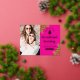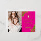 Postal Festiva Con Relieve Metalizado Maravilloso Navidad Foto Rosa Caliente