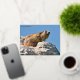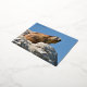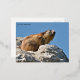Postal Festiva Con Relieve Metalizado Marmota alpina en roca
