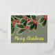 Postal Festiva Con Relieve Metalizado Mistletoe Merry Christmas