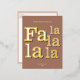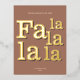 Fácil de personalizar, solo personaliza estas simples y modernas tarjetas postales Fa la la la la la no Relieve metalizado de oro fotográfico con tu nombre para una forma divertida de difundir la alegría de las vacaciones. El diseño de la tipografía minimalista presenta tonos tierra de un café tostado caliente y mocha marrón, letras en negrita en un elegante Relieve metalizado de oro real con una sombra oscura de caída y una plantilla de texto en la parte inferior para tu nombre y el año, si quieres. Cada tarjeta postal de vacaciones Fa la la la Relieve metalizado de oro se revierte a un blanco sólido con un borde de color cálido, espacio para su dirección de retorno y una plantilla de texto para el texto de sus Navidades personalizados o puede eliminar el mensaje de marcador de posición. Estas auténticas tarjetas de postales de Relieve metalizado de oro personalizadas sin tipografía fotográfica en colores tierra de café mocha y el color marrón mezclan la blancura y la tradición con un moderno diseño gráfico mínimo.