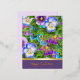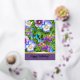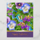 Postal Festiva Con Relieve Metalizado Monograma Nacimiento Pansy Flores Violetas acuarel