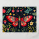 Postal Festiva Con Relieve Metalizado Moth Roja En El Jardín Nocturno