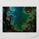 Postal Festiva Con Relieve Metalizado Mushrooms and Moons Teal Blue Fairycore