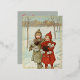 Niñas viejas paseando por una calle nevada cargando pequeños paquetes. La artista sueca Jenny Nystrom creó el diseño festivo. Alma Wad alteró y agregó la imagen vintage a esta postal de vacaciones de Relieve metalizado dorado. Algunos componentes de diseño se imprimen a todo color en la parte posterior y en el Relieve metalizado real en la parte delantera. Puede modificar la redacción, añadir una foto, un texto, un logotipo, etc.