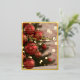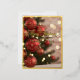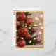 Postal Festiva Con Relieve Metalizado Ornamentos rojos de Feliz Navidad con nombre