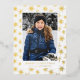 Elegante postal vacacional con tu foto vertical enmarcada por hermosos copos de nieve de Relieve metalizado dorado con fondo blanco. Personalice la postal del copo de nieve de Relieve metalizado dorado con un saludo de vacaciones personalizado y su nombre familiar. La tarjeta postal de Navidades de Relieve metalizado se revierte para mostrar su dirección de retorno y su mensaje personal.