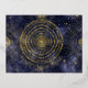 Postal Festiva Con Relieve Metalizado Patrón de explosión de estrellas doradas de noche