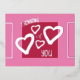 Envía un mensaje dulce con estas encantadoras postales del Día de San Valentín. Este diseño presenta palabras "pensando en ti" alrededor de corazones dibujados a mano y dos formas geométricas impresas en tu elección de textura de Relieve metalizado real. Los colores de este fondo de diseño son viva magenta y rosa. Diseño de Ms_Jade. © Ms_Jade