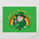Postal Festiva Con Relieve Metalizado Personalizado lindo leprechaun con shamrock y arco