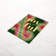 Navidades clásicos contemporáneos tarjeta de bienvenida de temporada navideña con un patrón abstracto de color verde claro y oscuro, rosa y rojo con Relieve metalizado oro real JOYFUL texto de deseo. Con espacio para el personalizar o la personalización del texto en la parte delantera, y el nombre de la familia (o nombres individuales) y un mensaje de bienvenida de temporada de personalizable en el reverso de la tarjeta.