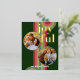 Navidades clásicos contemporáneos tarjeta de bienvenida de temporada navideña con un patrón abstracto de color verde claro y oscuro, rosa y rojo con Relieve metalizado oro real JOYFUL texto de deseo. Con espacio para personalizar o personalización con dos fotos y nombre de familia (o nombres individuales) en la parte delantera, y un mensaje de bienvenida de temporada de personalizable en el reverso de la tarjeta.