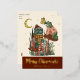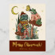 Postal Festiva Con Relieve Metalizado Rana de setas rojas y toad Feliz Navidad F