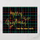 Un bonito tartán verde y rojo con el Relieve metalizado de lujo añadido de un saludo de Feliz Navidad. Personalizado con tu nombre. Mensaje personal y foto familiar en el lado del mensaje.