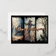 Esta elegante postal de Relieve metalizado transforma el encanto espeluznante del diseño del panel de pinceles en un toque de lujo. La parte delantera de la postal cuenta con tres inmensos paneles acuáticos dispuestos uno al lado del otro en un plano horizontal: a la izquierda, una casa fantasmagórica y embrujada se asoma bajo un cielo iluminado por la luna, su silueta torcida y sus brillantes ventanas irradian misterio. El panel central presenta un espantapájaros espantapájaros de guardia de pie en un campo niebla, sus rasgos cosidos y su gorra capeado creando un punto focal escalofriante. A la derecha, dos arvejas negras amenazantes se colocan sobre un cementerio que se desmorona, con un árbol enrollado que se extiende hasta la noche detrás de ellos. A lo largo de la mitad de la tarjeta, dividiendo los tres paneles, el saludo "Halloween feliz" está estampado en un Relieve metalizado dorado brillante usando un sofisticado tipo de letra cursiva. El Relieve metalizado metálico capta la luz, lo que proporciona un sorprendente contraste frente a los tonos atmosféricos y monótonos de las obras de arte que hay debajo. Impresa en material de cartón de primera calidad con un acabado mate suave y un texto de Relieve metalizado brillante, esta postal es a la vez espeluznante y refinada, perfecta para saludos de temporada, decoración de Halloween o como pieza de coleccionista para los amantes del elegante estilo gótico.