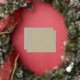 Postal Festiva Con Relieve Metalizado un fondo beige con un patrón de cuadrados pequeños