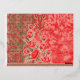 Postal Festiva Con Relieve Metalizado una bufanda roja con flores sobre ella