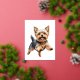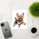 Postal Festiva Con Relieve Metalizado Yorkshire Terrier Happy Playful Jumping Joyful