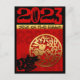 En un cuadrado hay un recorte de papel de conejo negro, colocado en la esquina izquierda mirando una forma redonda dorada dentro de la cual está el segundo conejo con ideograma. Detrás de la escena hay un fondo rojo en el que letras decorativas y ornamentadas forman las palabras: AÑO DEL CONEJO. Diseño en tarjeta postal vertical con gran 2023 rojo sobre fondo negro. Puede cambiar fácilmente el número (fuente, color, tamaño y posición) haciendo clic en el botón personalizar. Tarjeta de felicitación horizontal coincidente, tarjeta de felicitación vertical y horizontal y más... Perfecto para el Año Nuevo Chino del Conejo 2023 o cumpleaños (personas nacidas en el Año del Conejo).