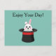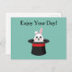 Un ilustracion de un lindo conejito blanco mirando al gorra mago negro con acento rojo. Este adorable diseño de conejo blanco es un regalo para los amantes de la magia, los magos, los amantes del conejo, la madre de piel, el padre de piel, los amantes de mascotas y los amantes de los animales. Personalice o personalizar esta postal de vacaciones agregando su propio texto.