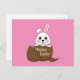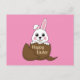 Postal Festiva Conejo blanco lindo en huevo de chocolate Feliz Pa