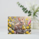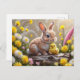 Postal Festiva Conejo de Pascua y pollo con bebé amarillo