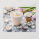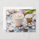 Postal Festiva Copa Cappuccino con corazón flotante y compromiso