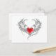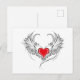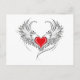 Corazón rojo pintado de forma artística con alas de ángel gris, decorado con un contorno suave negro.