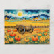 Postal Festiva Cosecha de Campo de Calabazas con Carro de Heno