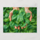 Postal Festiva Cosecha de espinacas fresca en manos