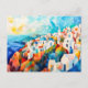 Una audaz pintura al óleo abstracta de la costa de Santorini, que combina azules profundos y naranjas encendidos en una composición fascinante. La mezcla perfecta de expresionismo moderno y encanto mediterráneo.
