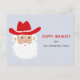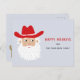 Santa Claus in a cowboy hat for a fun Western take on Christmas. Change the name and the greeting to personalize. Reverse features a matching cactus. Original art by Nic Squirrell.