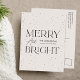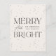 Envíe saludos festivos con esta moderna postal navideña "Merry and Bright". El diseño presenta letras negras en negrita sobre un fondo crema con sutiles puntos negros de nieve que le confieren un estilo sencillo y elegante. Personalice el frente con su apellido y el año. El lado inverso incluye espacio para la dirección de retorno y el mensaje de vacaciones en las letras negras coincidentes. Una elección moderna y elegante para compartir alegría de vacaciones sin foto.