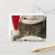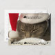 Imagen de primer plano de Cuddle, un lindo gato macho, con sombrero de santa. La tarjeta postal tiene Cuddle y Merry Christmas impresa en un "tipo de caramelo". ¡Muy lindo!