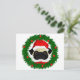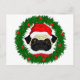 Postal Festiva Cuidados Navidades pug Santa en guirnalda