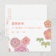 Flores elaboradas de estilo japonés y bonitas flores de cerezo en colores pastel sobre fondo blanco adornan tu mensaje personalizado en esta postal nengajo (年 賀 状). Dale a tus amigos y familia una tarjeta de bienvenida de Año Nuevo que amarán y disfrutarán
