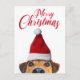 Postal Festiva Curioso perro gracioso con Santa Hat
