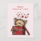 Valentine's Day postcard with a cute drawing of a little kitten poking its head out of a gift box.