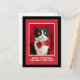 This adorable postcard features a tuxedo cat wearing a red bow tie for the Christmas holidays. The kitty has a red background behind her. The words, "Meowy Christmas and Happy Mew Year" appear below the kitty. On the reverse side you can customize your address and your names. A big paw has the word, "To:" inside it to add an extra cute touch for the holidays. Copyright Peaches the Tuxedo Cat