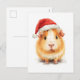 Postal Festiva Cute Guinea Pig in Santa Hat Watercolor