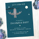 Un lindo murciélago vampiro colgado contra un verde azulado cielo verde iluminado por la luna. Diversión para un fiesta con tema de Halloween. Arte original de Nic Squirrell. El texto dice "¡Dejemos de colgar!" y se puede cambiar para personalizar su evento único.