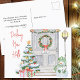 postal de navidades anunciando tu nueva dirección. Está escrito con Decking New Halls en escritura informal y puedes añadir tu número de puerta a la placa de número de la puerta delantera así como tu mensaje personalizado en la parte posterior. El diseño acuático cuenta con una puerta principal festiva con corona, número de puerta, árbol de navidad, regalos, snowman y linterna.