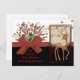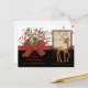 Disfrute de esta hermosa postal de vacaciones pintada a mano, que puede enviar a su familia o parientes. Tiene un ciervo lindo. El fondo es negro con texto personalizado y un arco rojo en el centro que separa el fondo negro de la parte superior blanca, con una floral bellamente hecha sobre el arco. Actualiza fácilmente el saludo para que sea tuyo. Feliz Navidad!