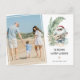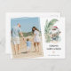 Buscando compartir unas vacaciones de alegría con sus seres queridos en casa mientras vivía en un clima cálido y tropical - Esta tarjeta postal única para Navidades es la manera perfecta de hacer justamente eso. El diseño muestra a Santa Claus con una camisa hawaiana, pantalones cortos de denim y gafas de sol, atascando una guitarra en medio de frondosos follajes tropicales y olas estrelladoras. Una estrella de mar lúdica separa el saludo personalizado del nombre y la fecha del remitente. Envíe cálidos deseos desde lejos con esta linda y festiva tarjeta de vacaciones.