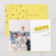 Esta tarjeta postal personalizable de manera única es una forma divertida de enviar deseos de Año Nuevo a familiares y amigos. El diseño tiene espacio para una foto y presenta texto en tipografía moderna en el frente. En el reverso, la tarjeta está adornada con un patrón de confeti negro lindo, divertido y moderno junto con saludos. Personalice la tarjeta reemplazando la foto de muestra, el año y los nombres. El color amarillo en el cuadro del año y la forma de corazón en el frente de la tarjeta y el color amarillo en el reverso de la tarjeta se pueden personalizar a cualquier color que desee simplemente cambiando los colores de fondo en ambos lados. También están disponibles en nuestra tienda productos coordinados y coincidentes como sellos postales, etiquetas de dirección de devolución, pegatinas redondas, etc.