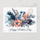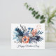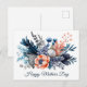 Hermosas flores de acuarela azules, melocotón y grises - Tarjeta postal del Día de la Madre