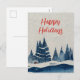 Postal Festiva Dibujo de paisaje invernal bosque azul marino