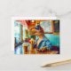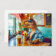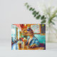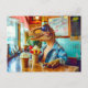 dinosaurio disfrutando de un helado gigante en una cafetería junto al mar. Dulce postre prehistórico.